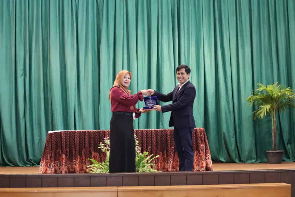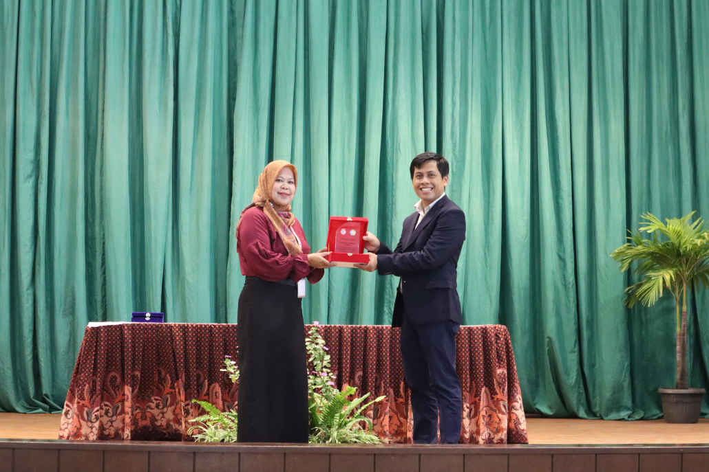 Di akhir acara, rektor Universitas Tarakanita dan perwakilan SMK Link and Match saling bertukar plakat sebagai bentuk apresiasi terlaksananya kerjasama kedua pihak.